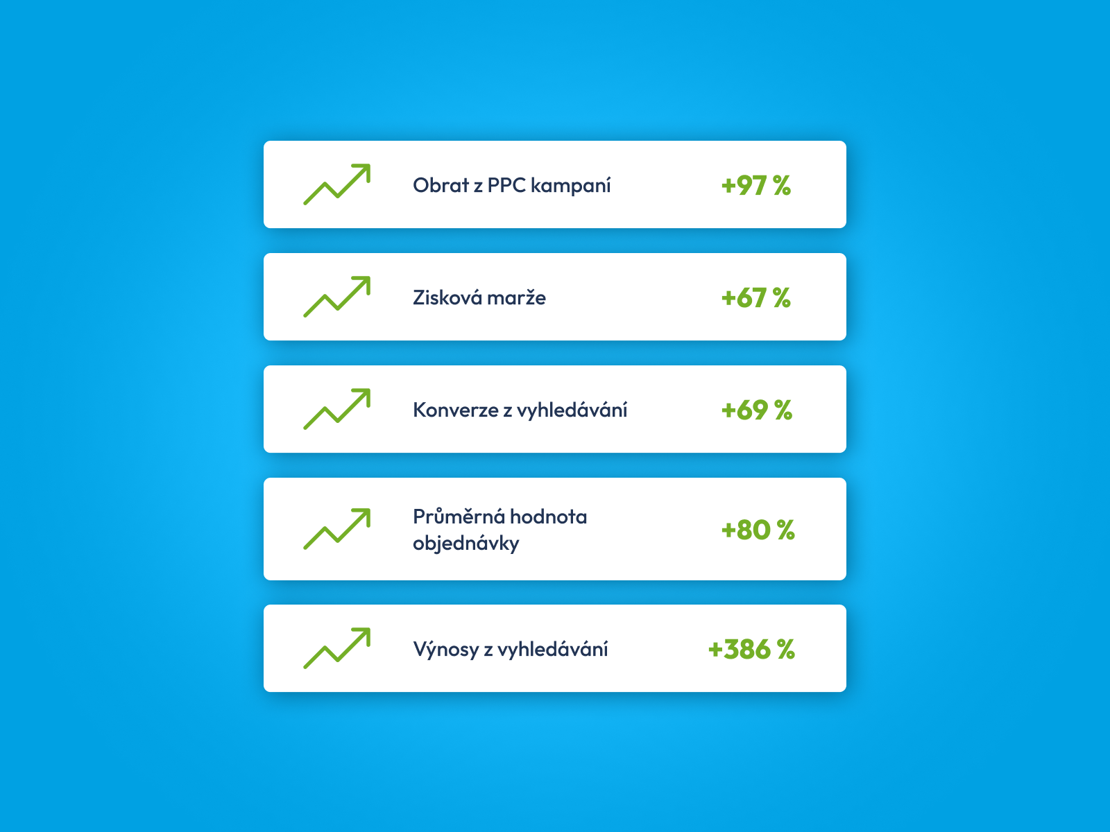 Spojením technologického řešení, výkonnostního marketingu a přesně cílené investice do reklamy jsme dosáhli mimořádných výsledků: